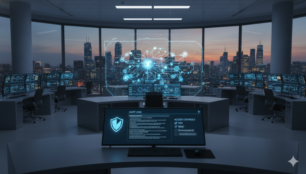 Governance & SDLC: version control, approvals/change management, dev/stage/prod environments, audit trails, and separation of duties.